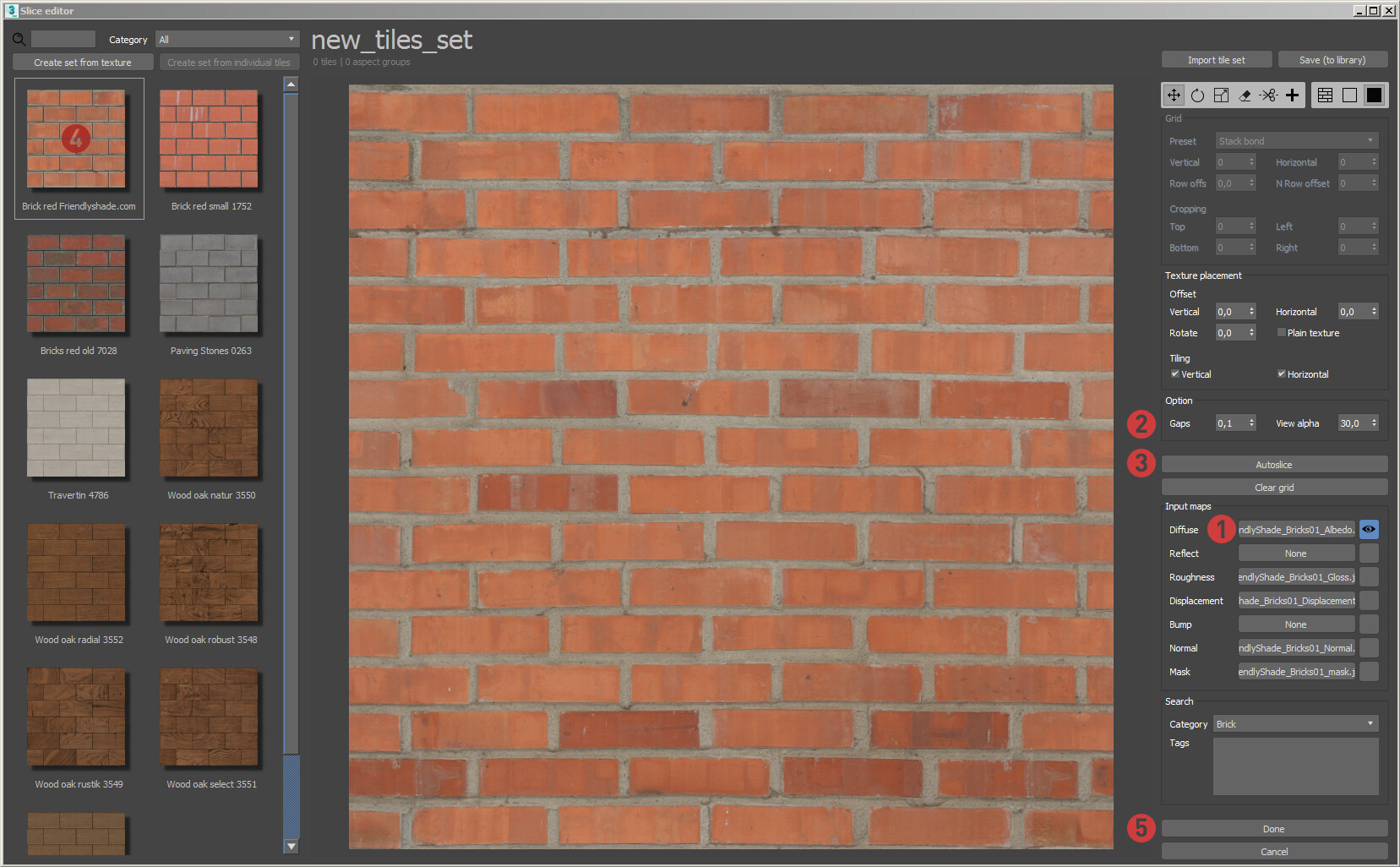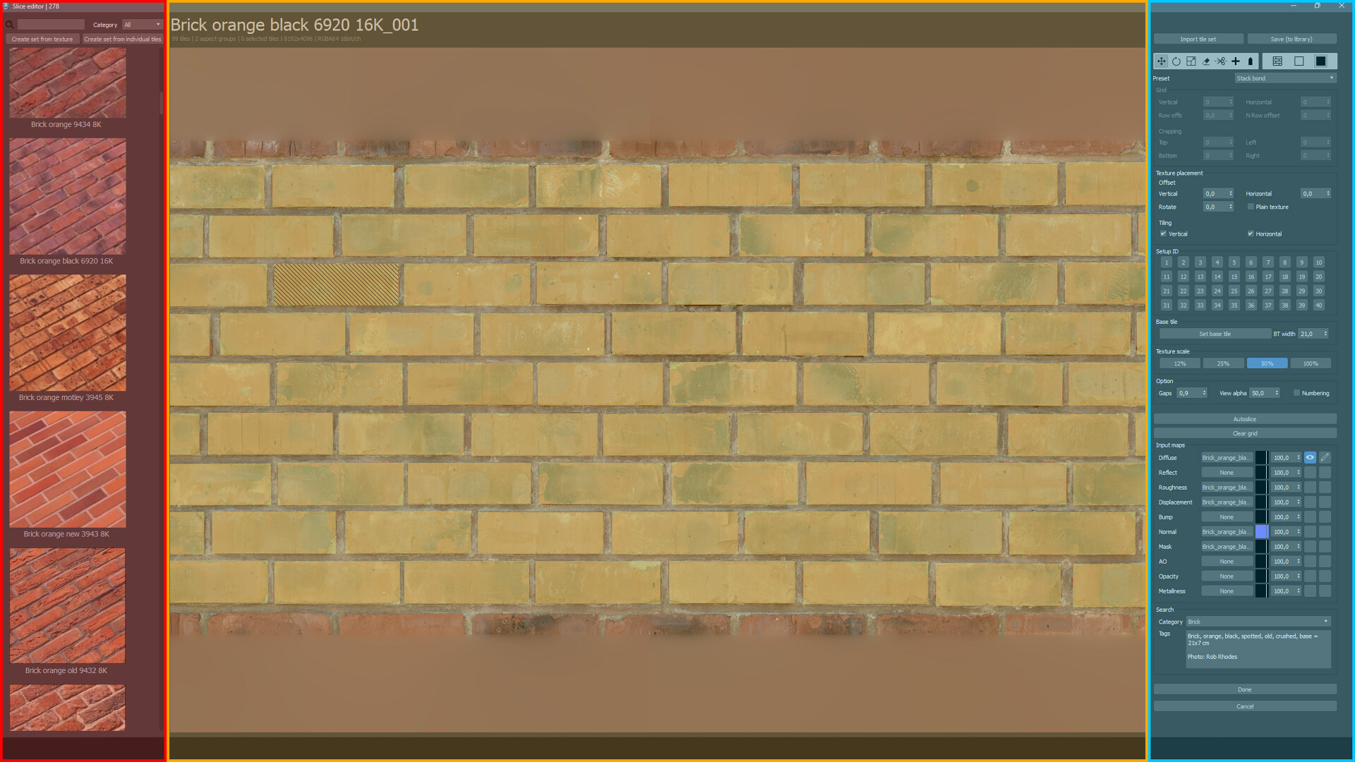 4. При работе в слайсере, выберете базовую плитку и укажите ее примерную ширину. Это позволит плагину на лету считать плотность исходной и итоговой текстуры и редактировать ее размер. А также, используйте интерактивное уменьшение исходной текстуры для ускорения просчетов.
