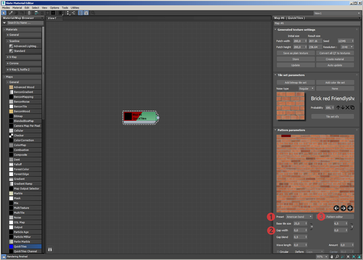 QuickTiles это плагин-текстура для 3d max. Он нарезает заданную вами текстуру на отдельные элементы, а потом пересобирает в указанном вами порядке. Он НЕ генерирует текстуры из ничего, по заданным параметрам. Для его использования необходимы исходные наборы текстур.