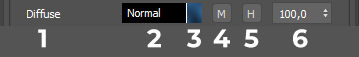2. ЛКМ — Выбор цвета канала, ПКМ — выбор опции смешивания битмапа и цвета