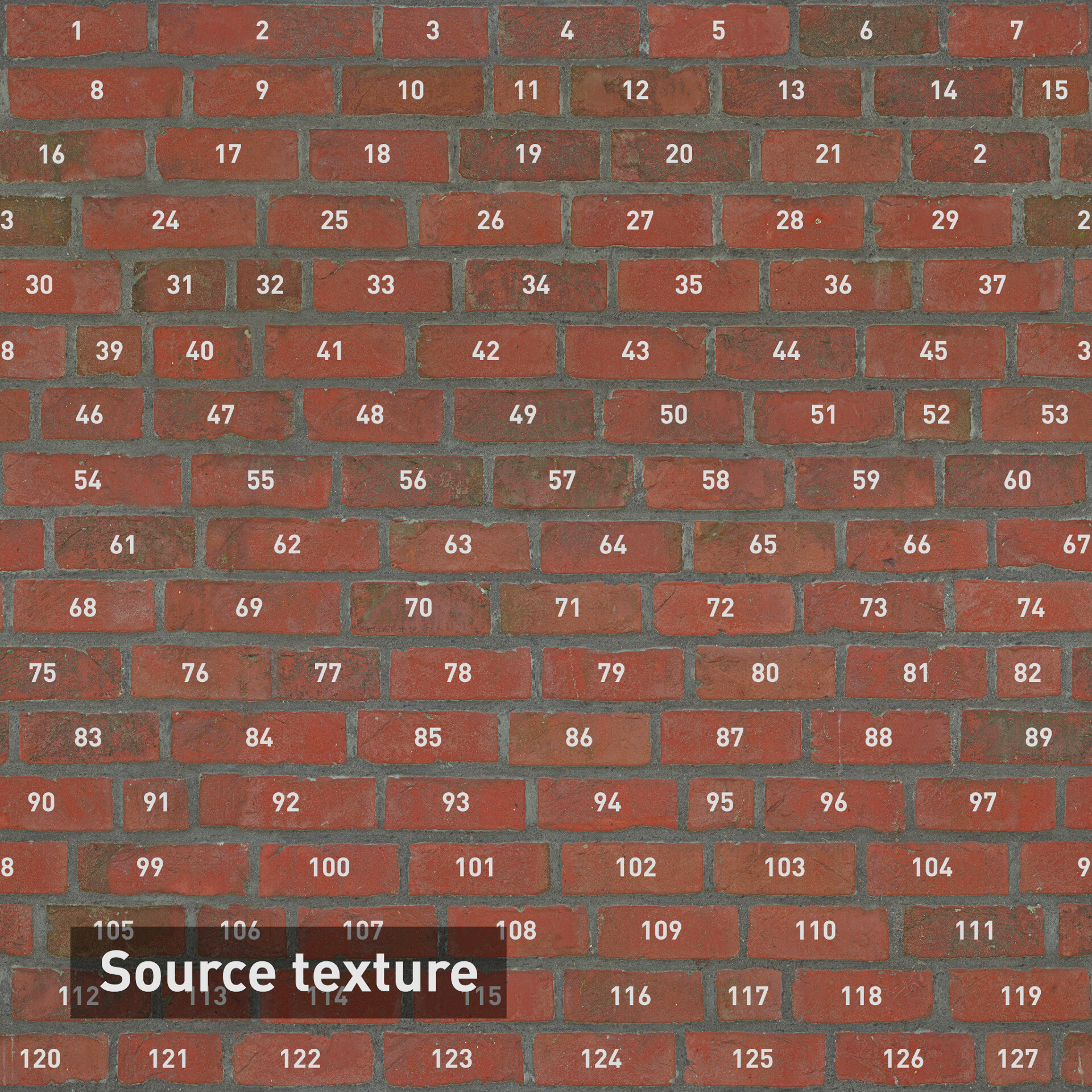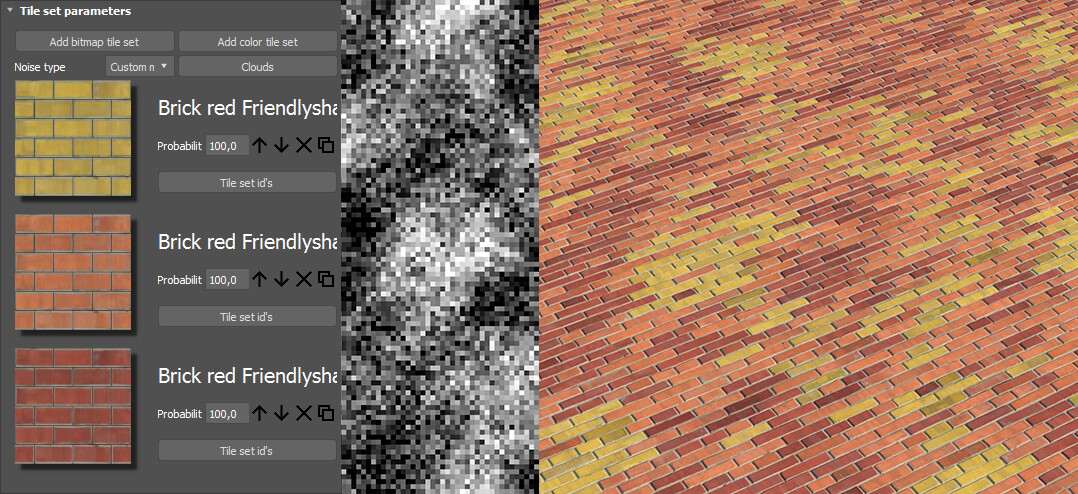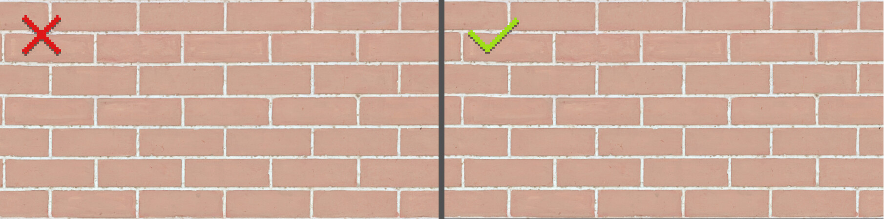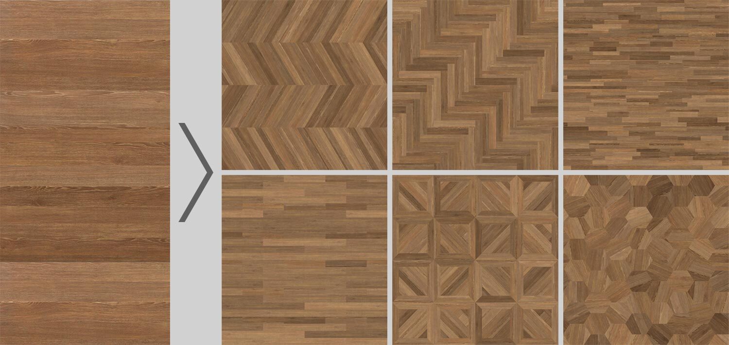 Существуют два основных варианта работы. Первый — реорганизация готовых плиточных текстур (у которых есть отдельные элементы и швы между ними), вроде кирпичной кладки или брусчатки.