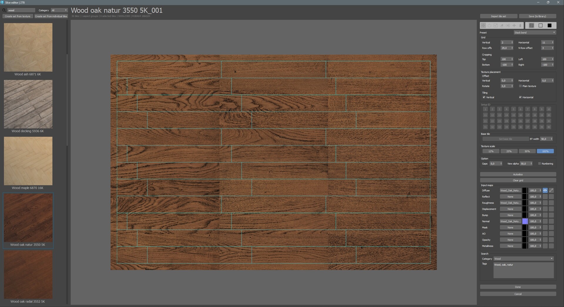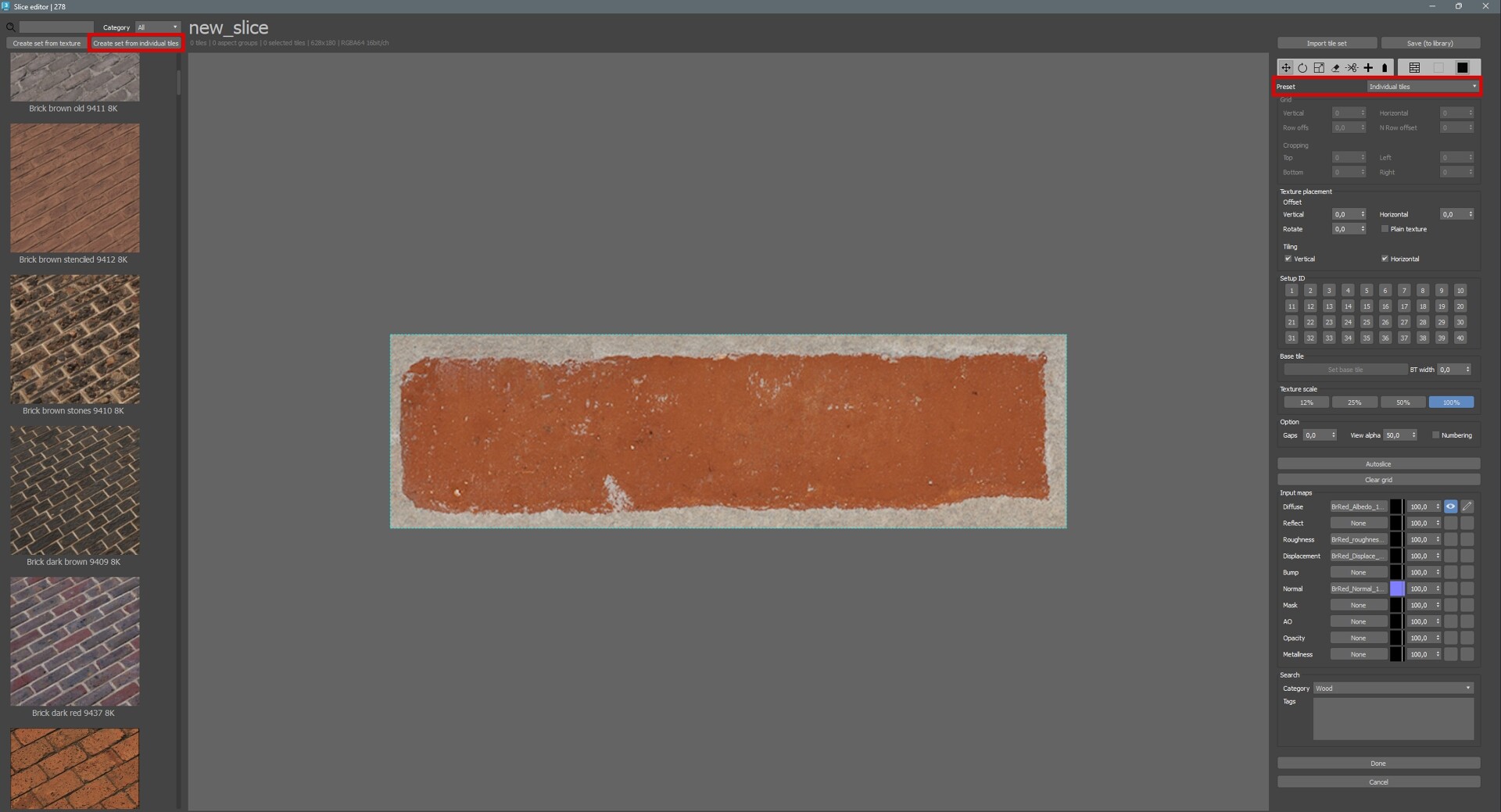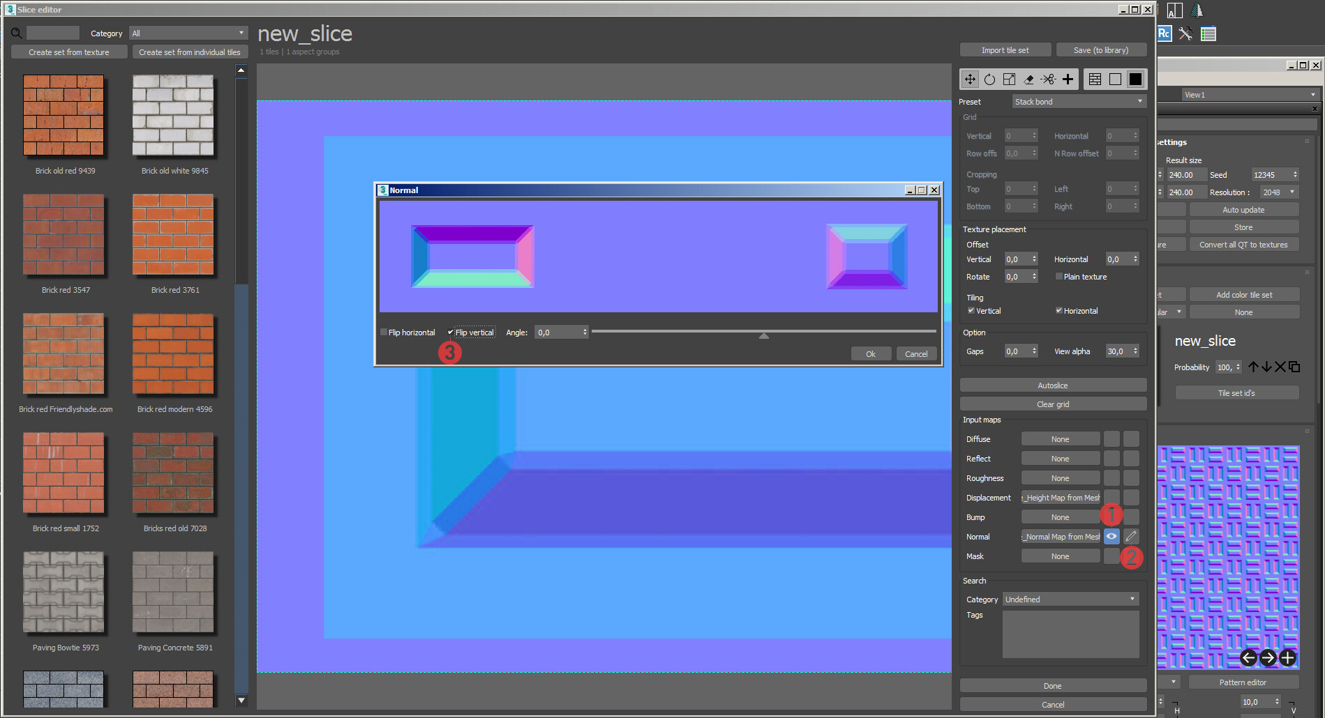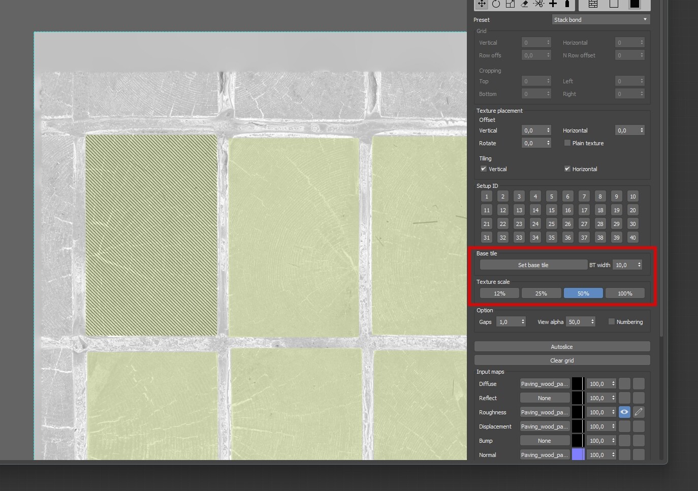 4. При работе в слайсере, выберете базовую плитку и укажите ее примерную ширину. Это позволит плагину на лету считать плотность исходной и итоговой текстуры и редактировать ее размер. А также, используйте интерактивное уменьшение исходной текстуры для ускорения просчетов.