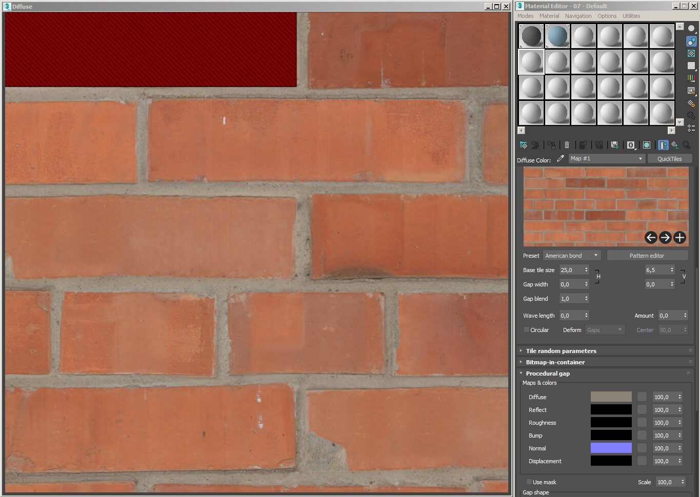 В секции Maps & colors вы можете загрузить битмап или установить цвет, который будет отображаться на процедурных швах и промежутках между плитками.
